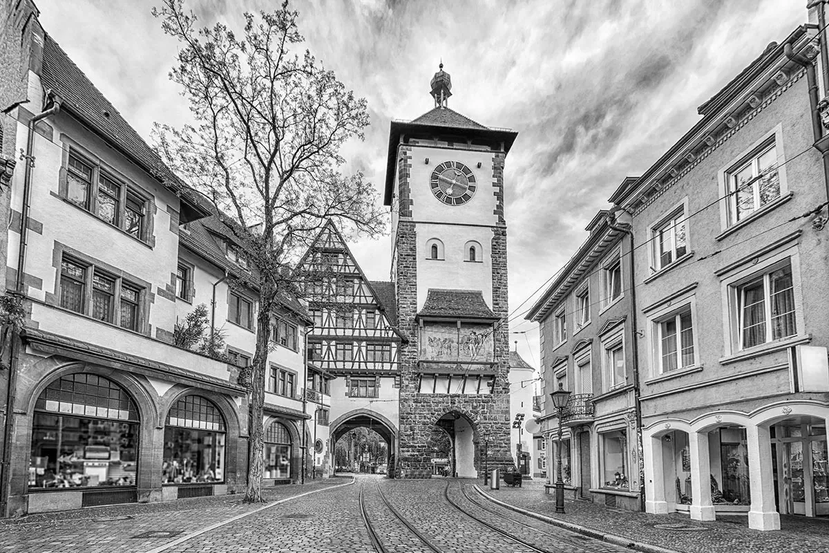 Die historischen Bächle – kleine Wasserrinnen, die durch die Freiburger Altstadt fließen – sind das Wahrzeichen der Stadt und sorgen an heißen Tagen für angenehme Abkühlung. Die malerischen Gassen der Altstadt bieten gemütliche Cafés, badische Weinstuben und vielfältige Einkaufsmöglichkeiten. Besonders sehenswert sind die historischen Stadttore wie das Martinstor und das Schwabentor.